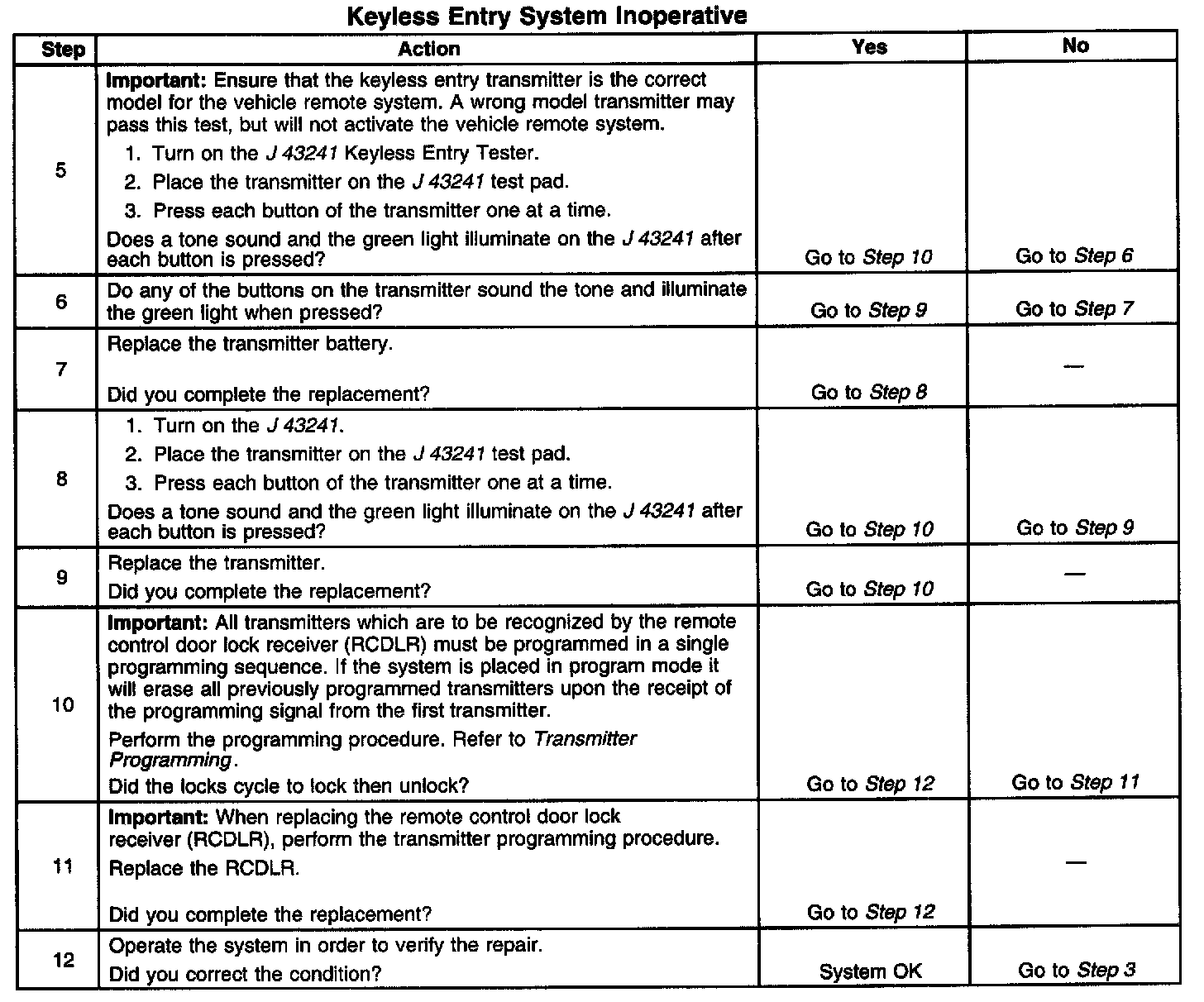 Keyless Entry System Inoperative
