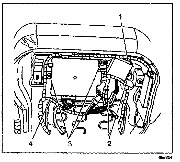 10. Drill out the rivets (3) retaining the memory seat module (4) to the seat cushion frame.