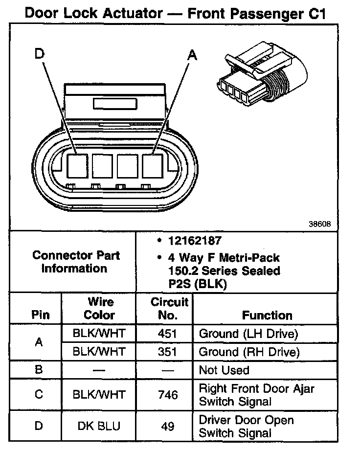 Door Lock Actuator - Front Passenger C2:
