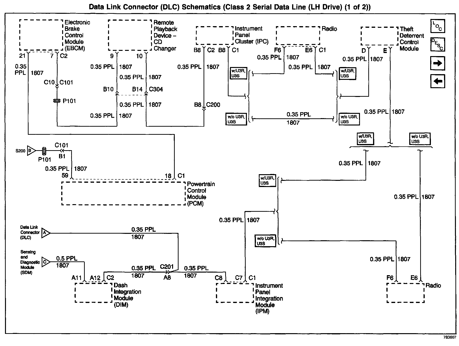 Data Link Connector (DLC) Schematics: Class 2 Serial Data Line (LH Drive) Part 1: