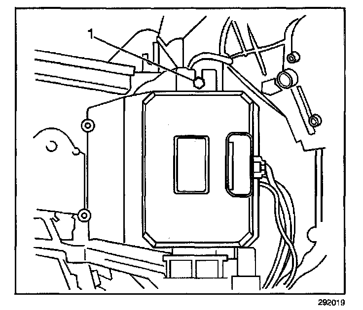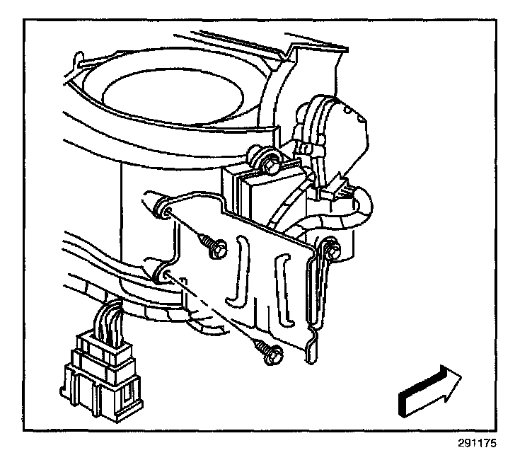 8. Remove the blower control module retaining fastener (1).