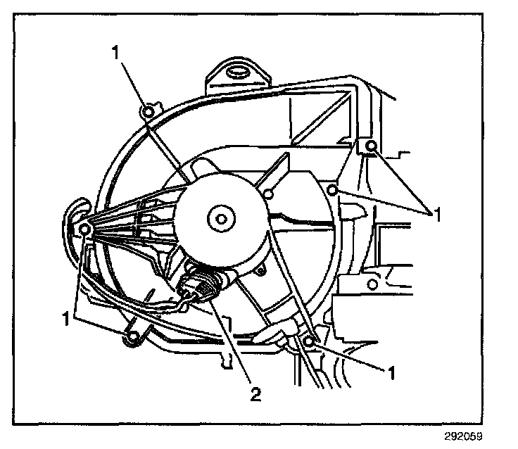 6. Disconnect the blower motor electrical connector (2).