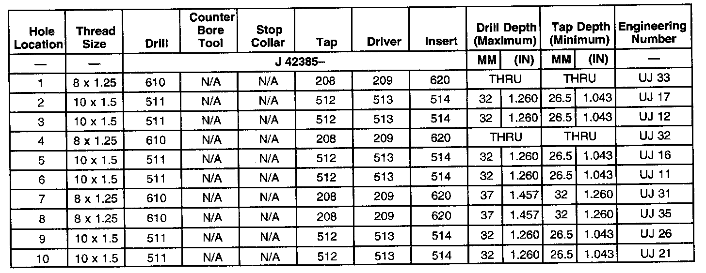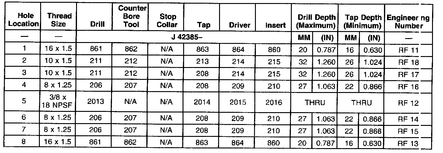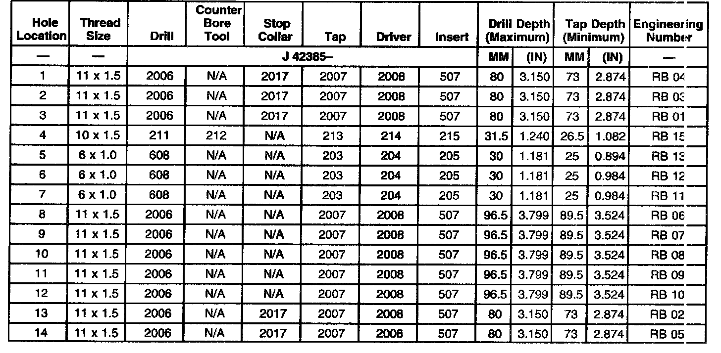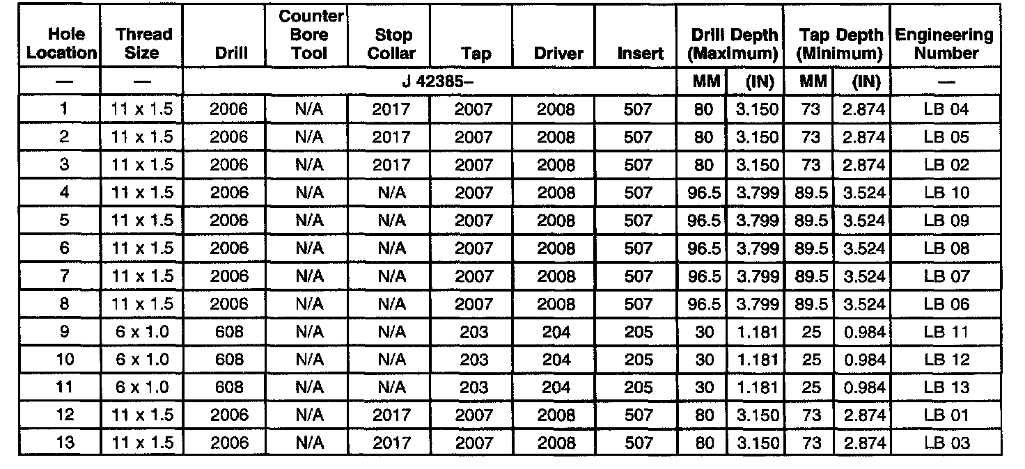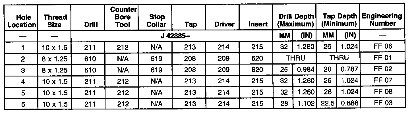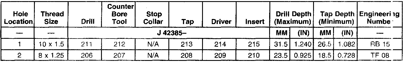 THREAD REPAIR SPECIFICATIONSLeft Cylinder Head Camshaft Cover Face