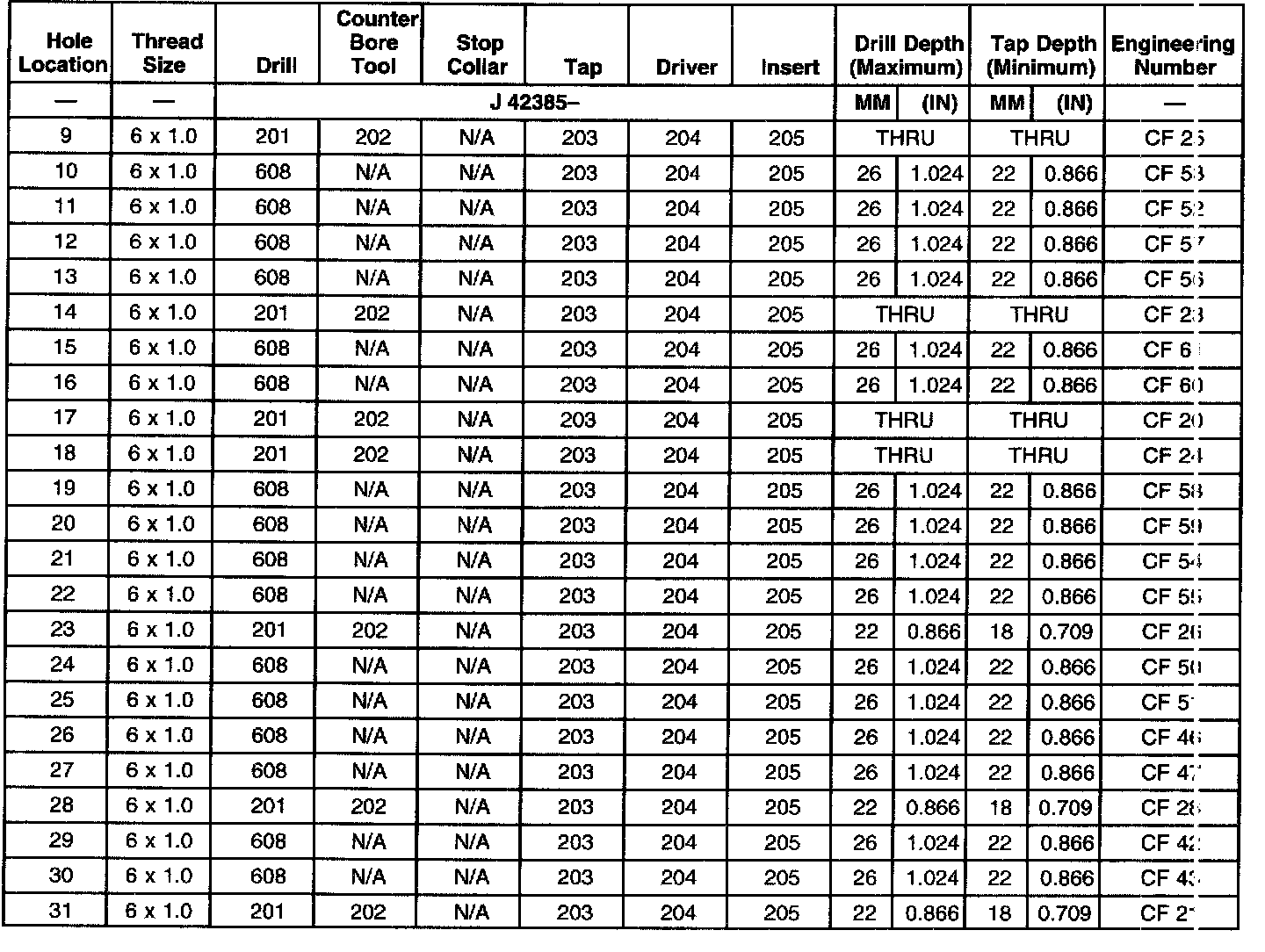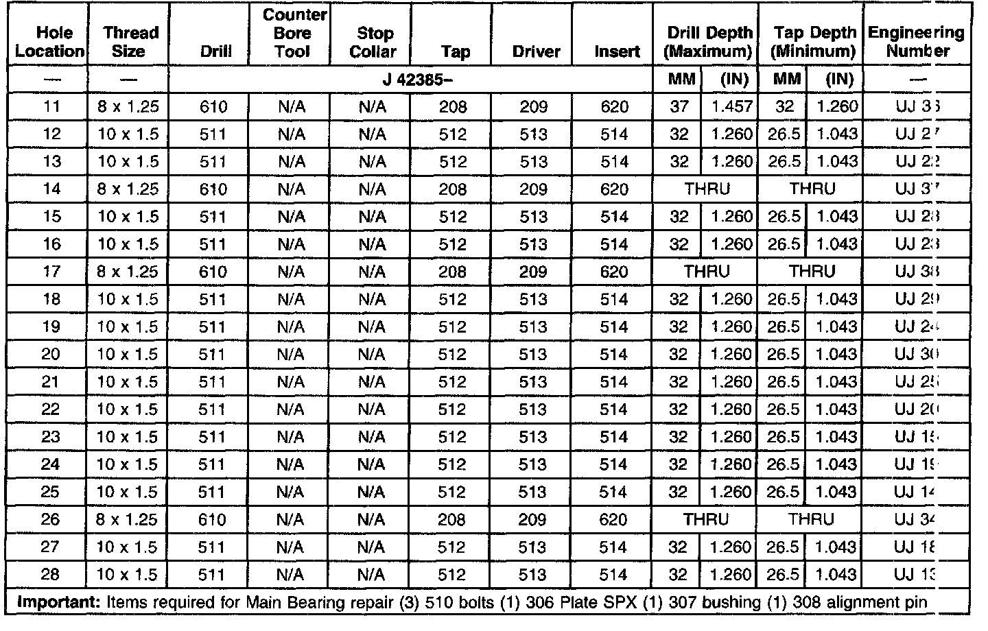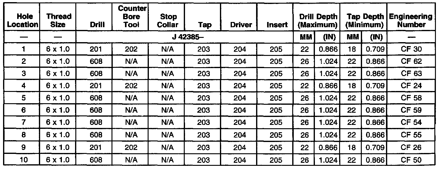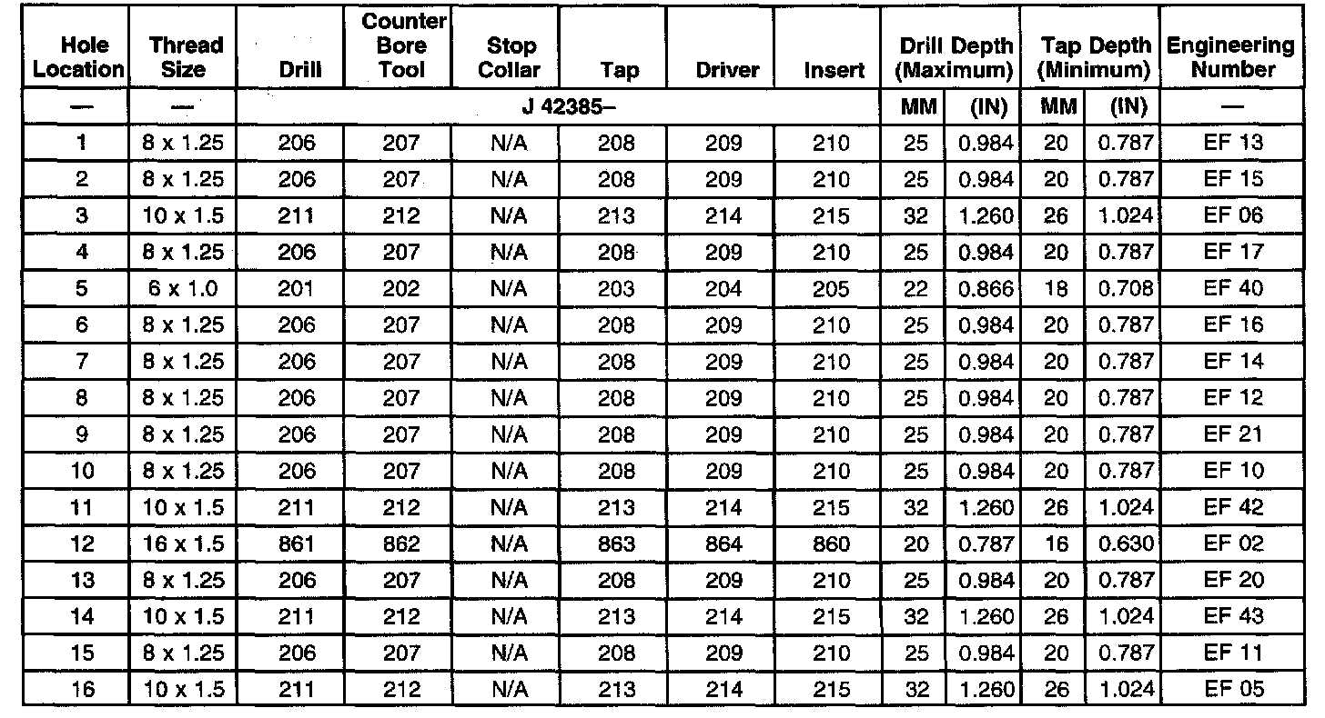 THREAD REPAIR SPECIFICATIONSLeft Cylinder Head Camshaft Cover Face