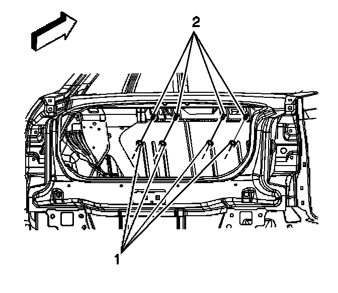 2. Remove the upper retaining nuts (1) from the rear seat back.