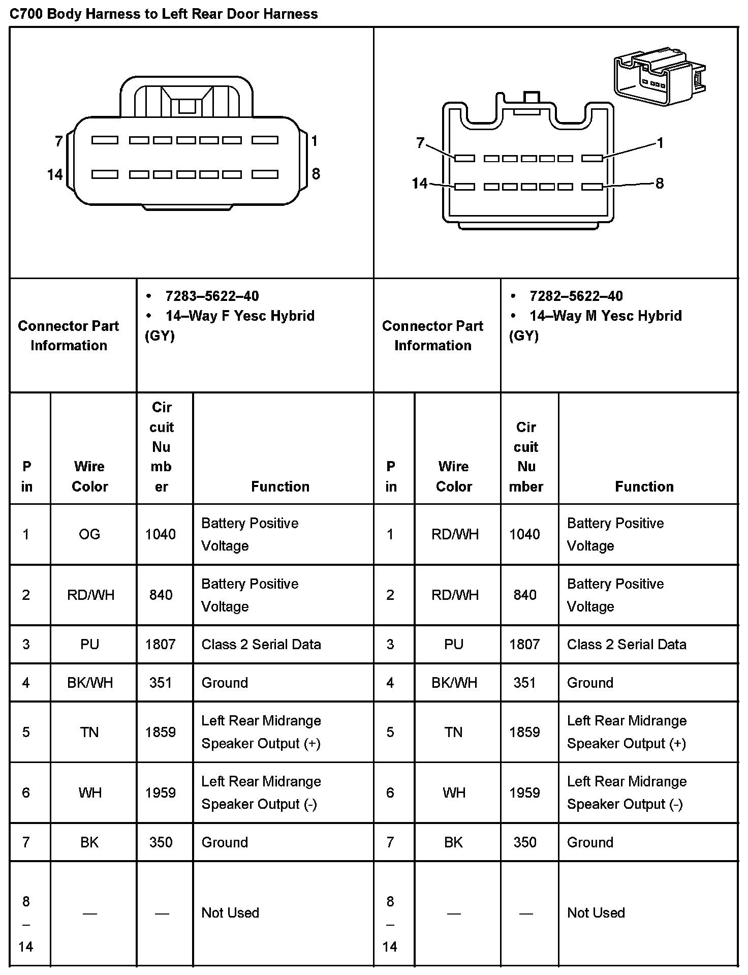 C700 Body Harness To Left Rear Door Harness: