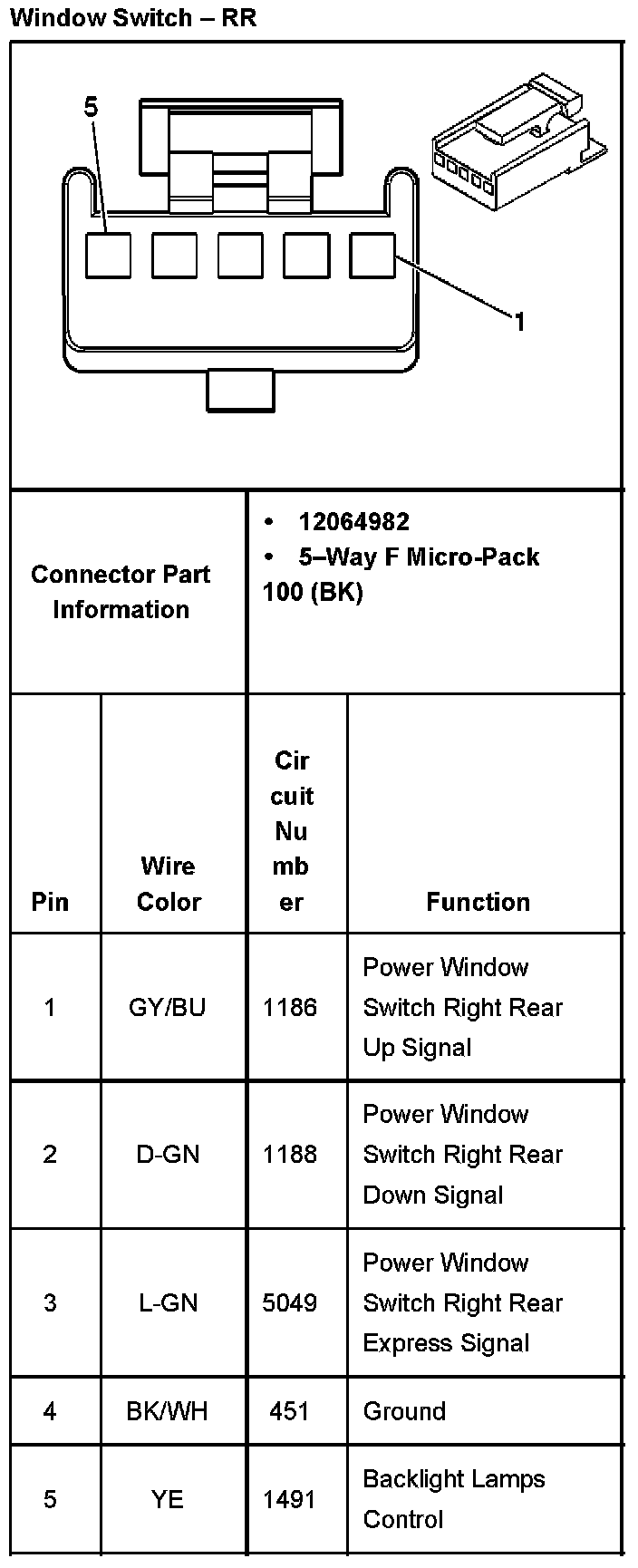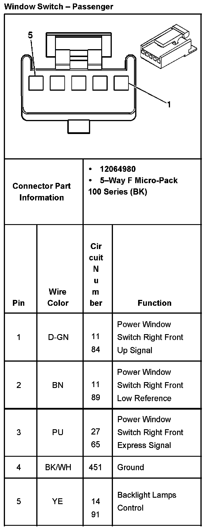 Window Switch - Passenger: