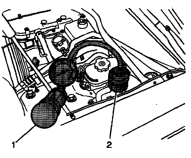 4. Use the J 24460-01 (1) with J 42401 (2) in order to apply pressure to the cooling system.