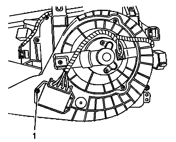 3. Remove the blower motor control processor retaining screw (1).