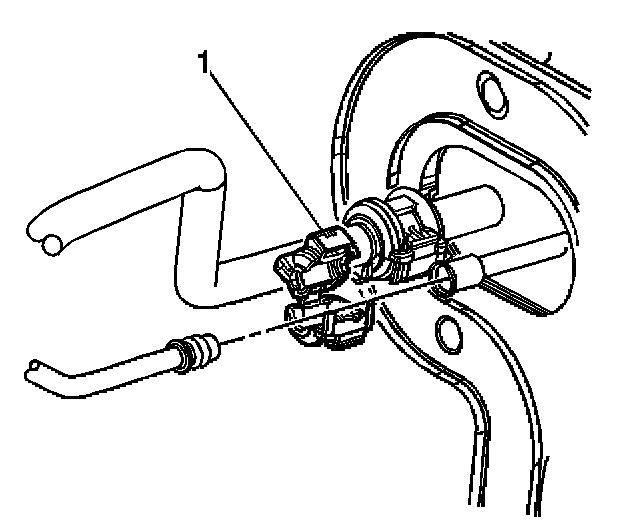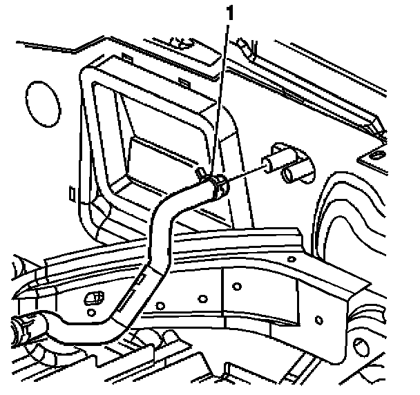 4. Using the J 38185 disconnect the heater inlet hose (1).