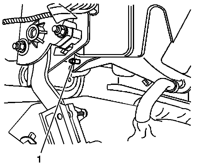 16. Install the A/C line and A/C line quick connect line clamp (1) to the evaporator.