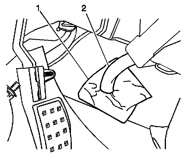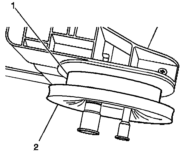13. Disconnect the HVAC module drain tube (2) from the floor.