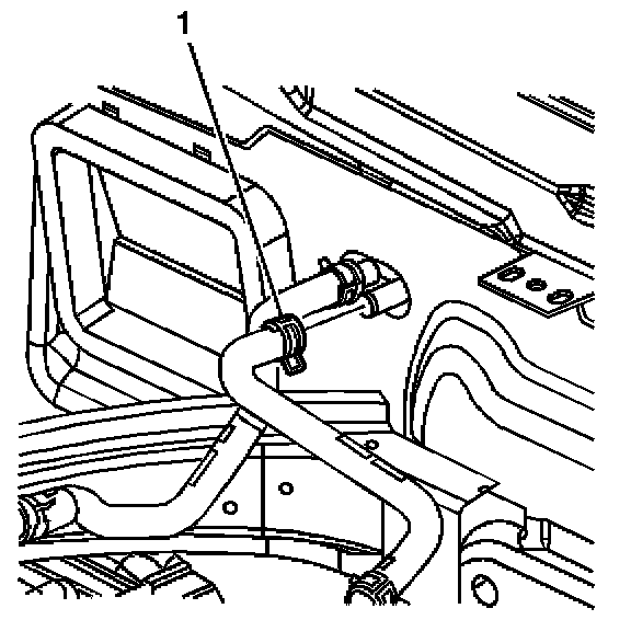 14. Install the A/C line and A/C line quick connect line clamp (1) to the evaporator.