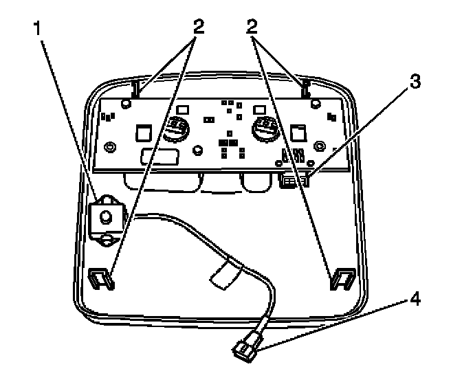 1. Pull down the overhead console to release the retainers (2) securing it to the headliner.