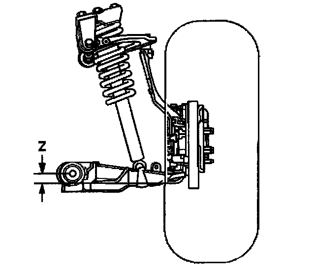 The Z height dimension measurement determines the proper ride height for the front end of the vehicle. There is no adjustment procedure. Repair may require replacement of suspension components.