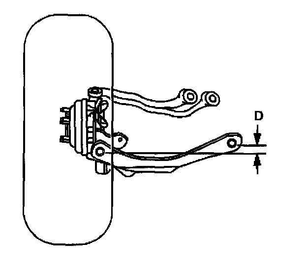 The D height dimension measurement determines the proper rear end ride height. There is no adjustment procedure. Repair may require replacement of suspension components.
