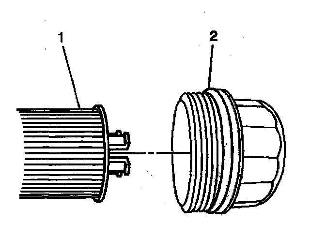Important: Ensure the tabs on the oil filter cartridge (1) lock firmly into the plastic cap.
