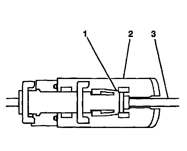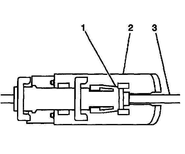 1. Install the clutch pedal position switch (2) to the clutch master cylinder push rod (3).