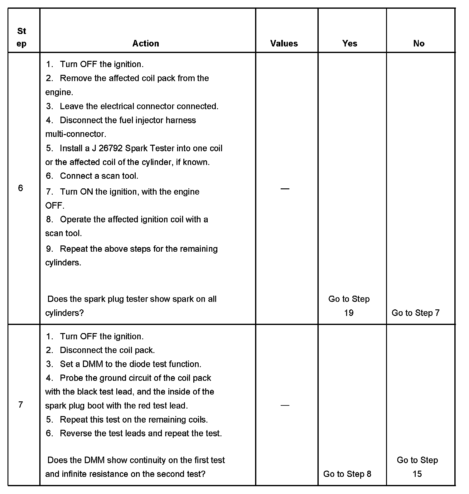 7. This step tests the diode in the secondary side of the coil and the continuity of the ground circuit inside the coil. You should be able to read continuity in one direction only.