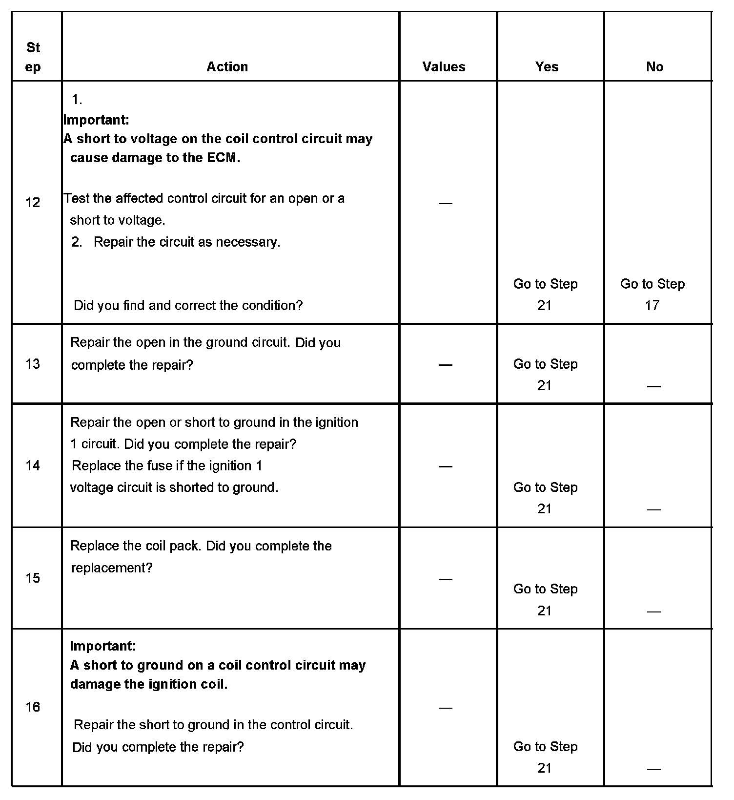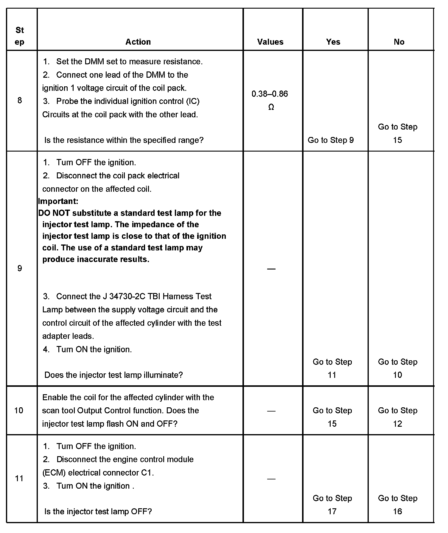 10. This step is to verify the operation of the ignition coil control circuit and the driver in the ECM.