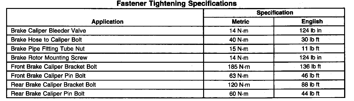 Fastener Tightening Specifications: