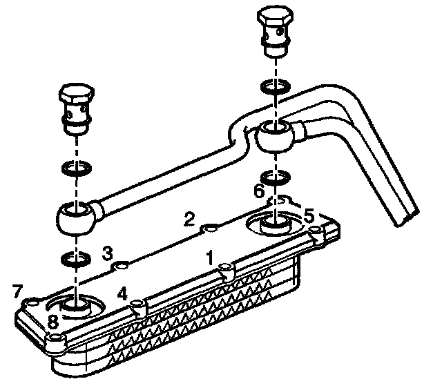 NOTE: Apply thread adhesive GM P/N 12345382 (Canadian P/N 10953489) to the engine oil cooler cover bolts.