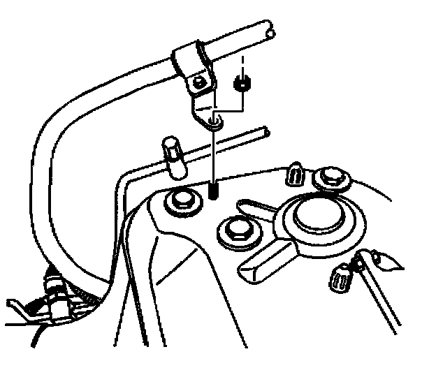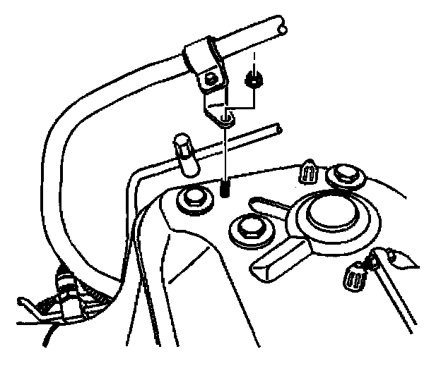 7. Remove the air conditioning line retaining nut from the shock tower.