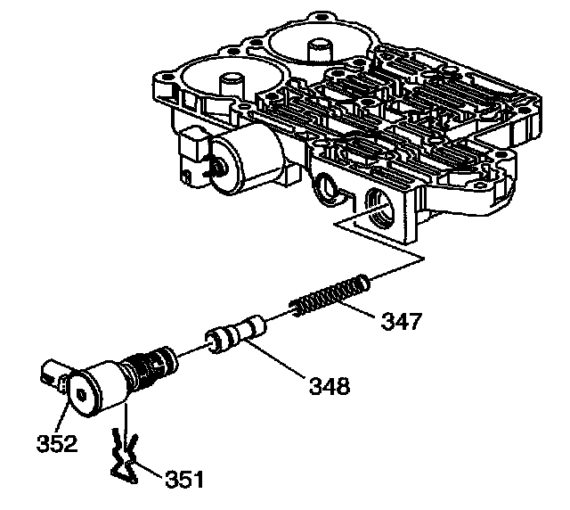 10. Remove the TCC regulator apply valve (348).