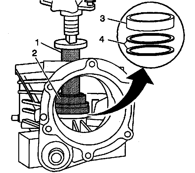 3. Using the J5590 (2) and the J42170 (1) install the shim (4) and the race (3) into the differential housing.