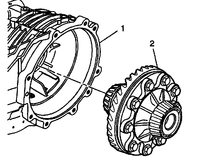 5. Install the selected shims or marked shims (2) on the pinion housing assembly (1) and the O-ring (3).