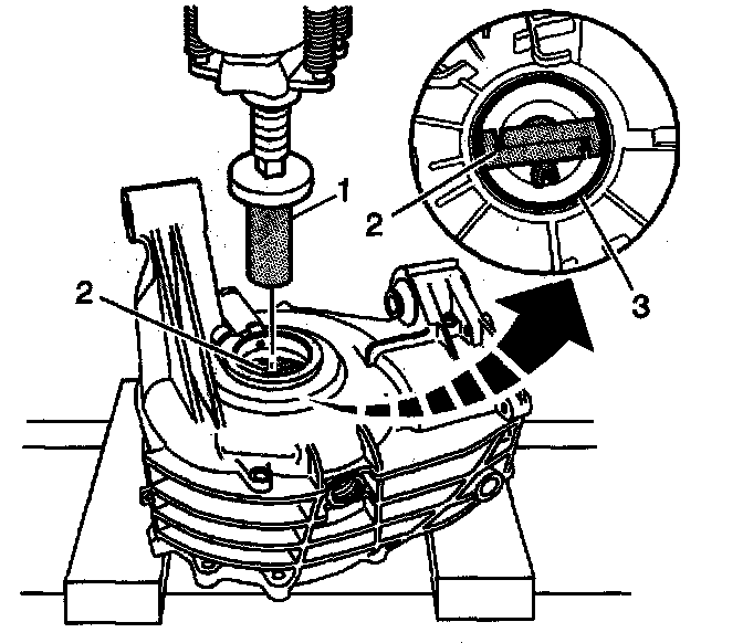 11. Install the J42194 (2) into the bearing race (3).