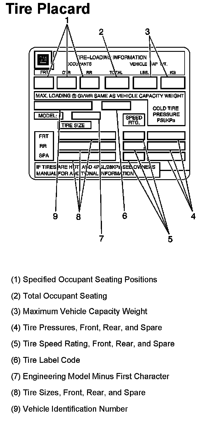 TIRE PLACARDTire Placard: