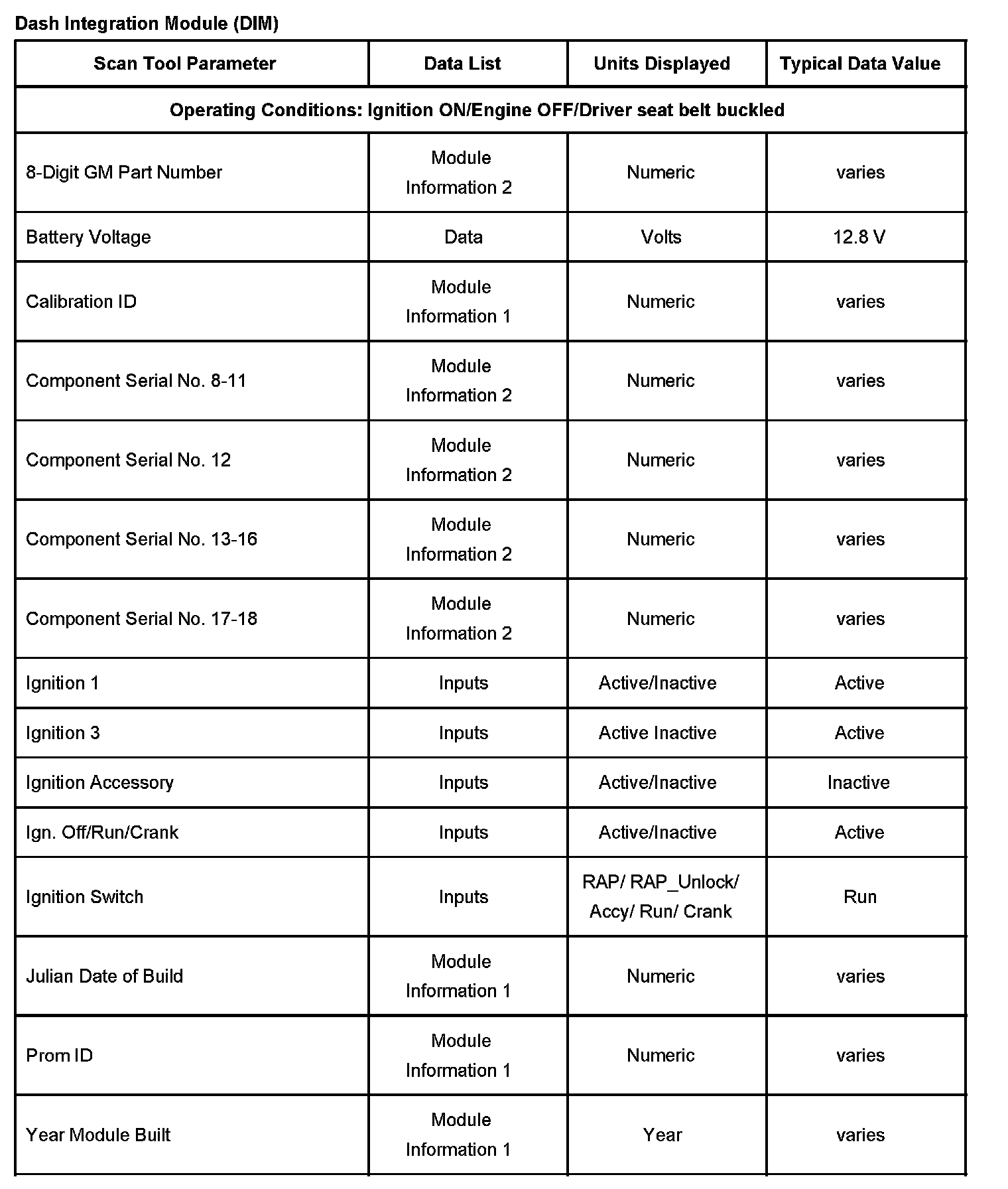 Scan Tool Data List - Dash Integration Module (DIM)