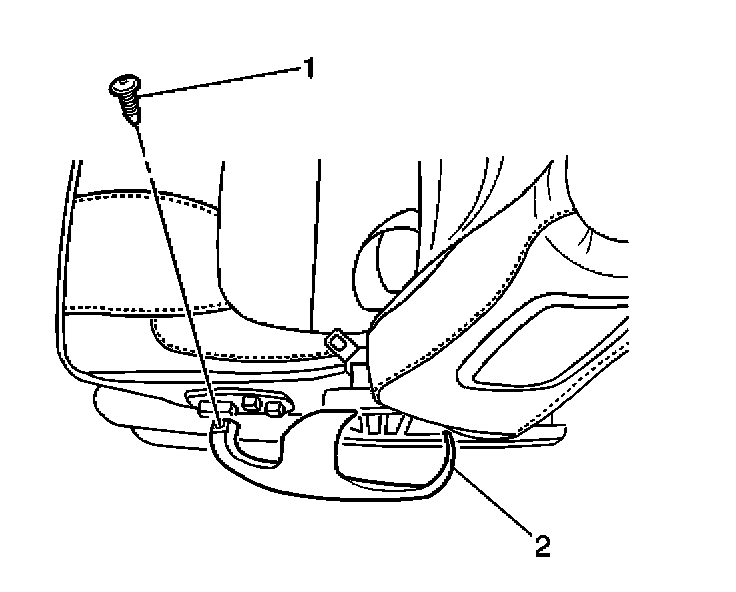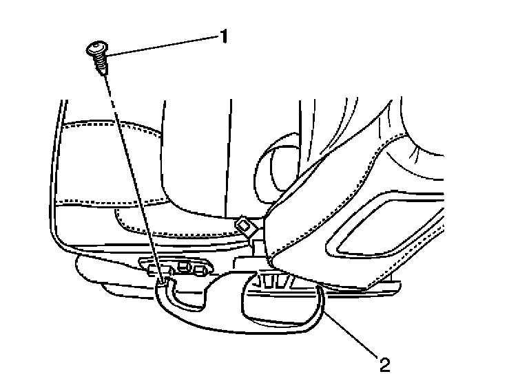 3. Remove the push pin retainer (1) from the edge of the lower seat belt retractor trim cover (2).