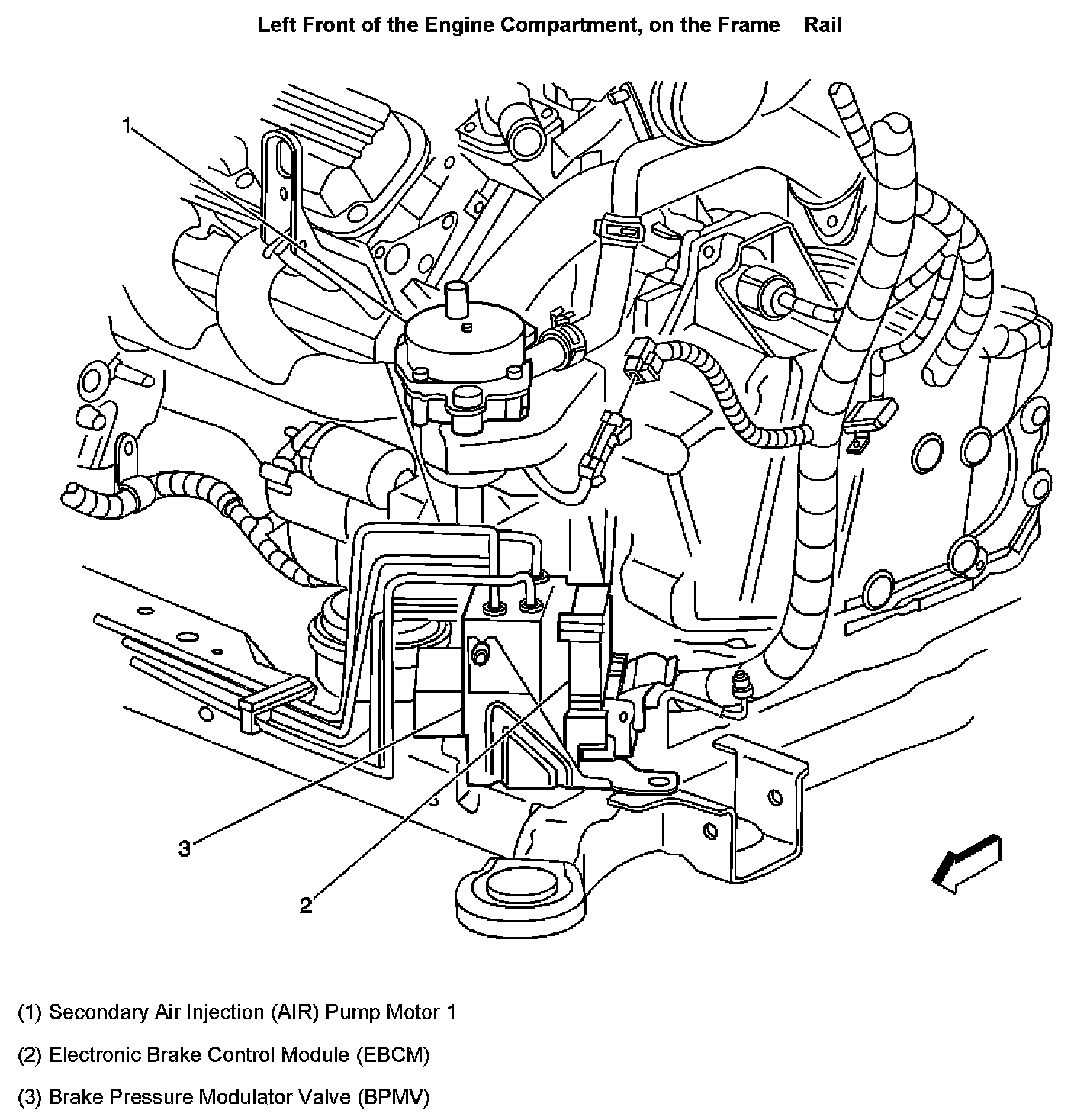 Left Front Of The Engine Compartment, On The Frame Rail: