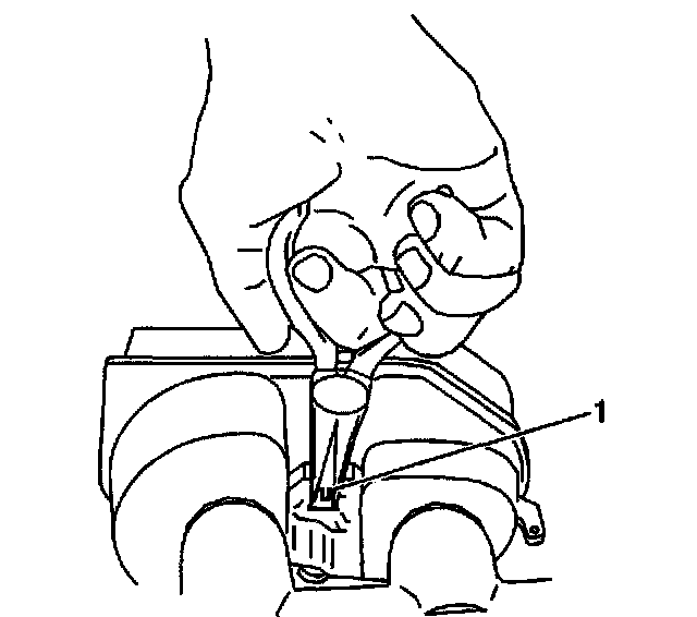 2. Using a needle nose pliers carefully depress the retaining tabs (1) on the end of the brake fluid level sensor and press the sensor through the reservoir to remove.