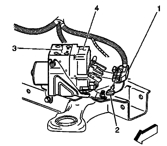 8. Disconnect the EBCM electrical connector (1) from the EBCM (4).