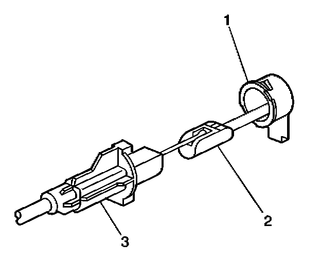3. Snap the cruise control cable (3) into the cruise control module (1).