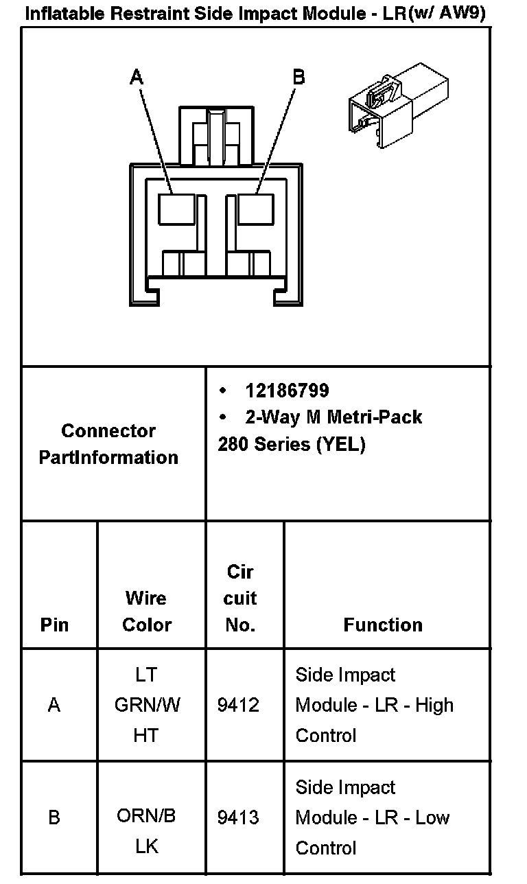 Inflatable Restraint Side Impact Module - LR (W/AW9):