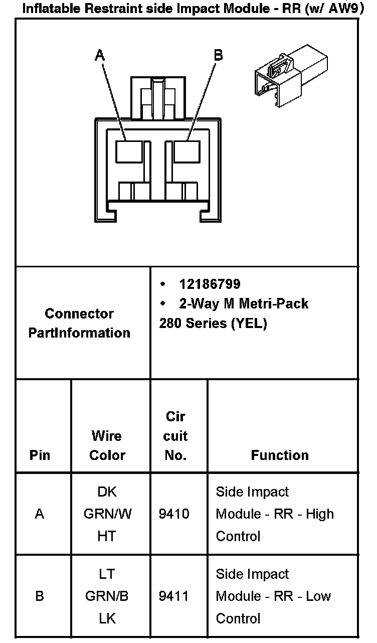 Inflatable Restraint Side Impact Module - RR (W/AW9):