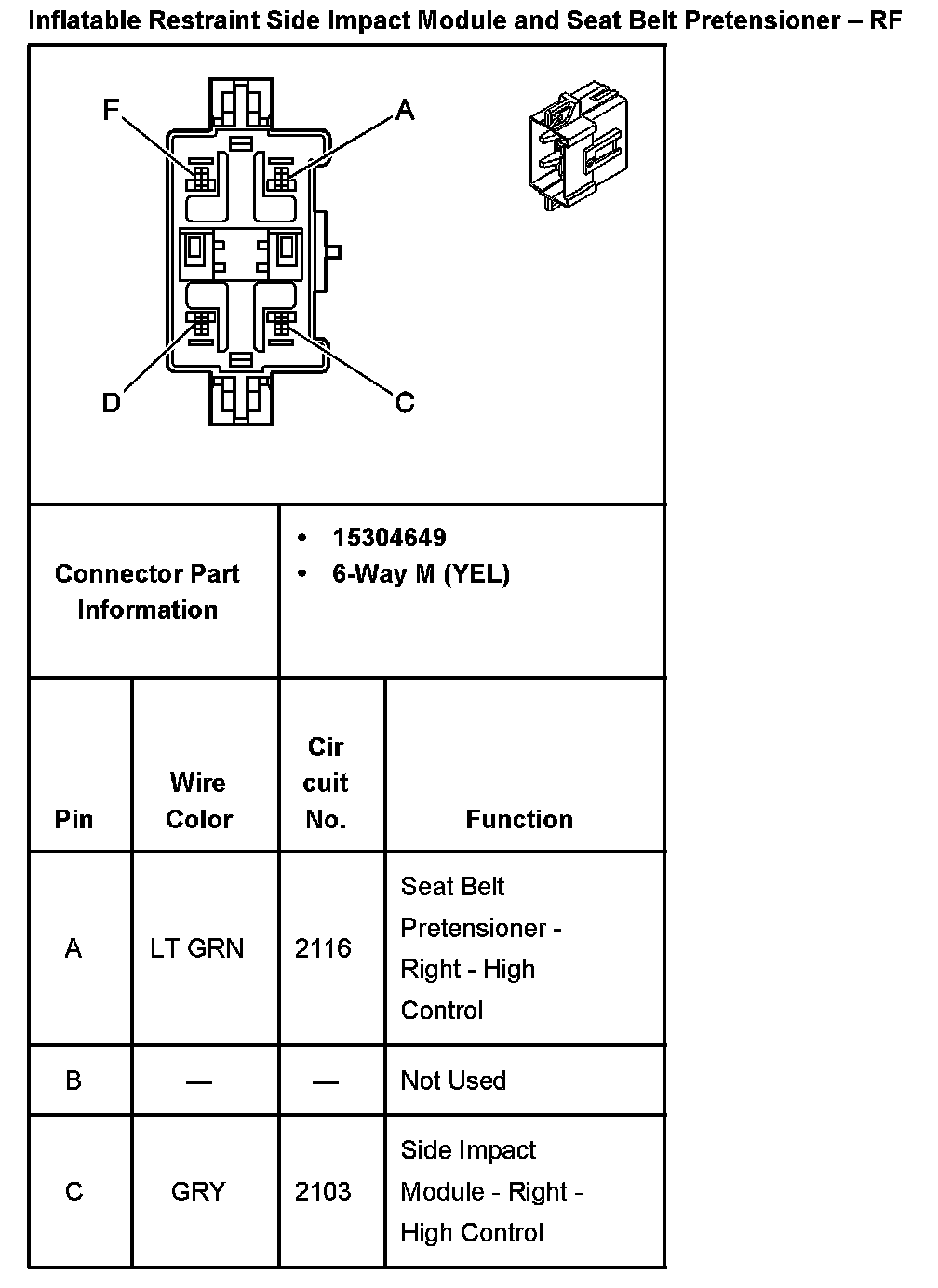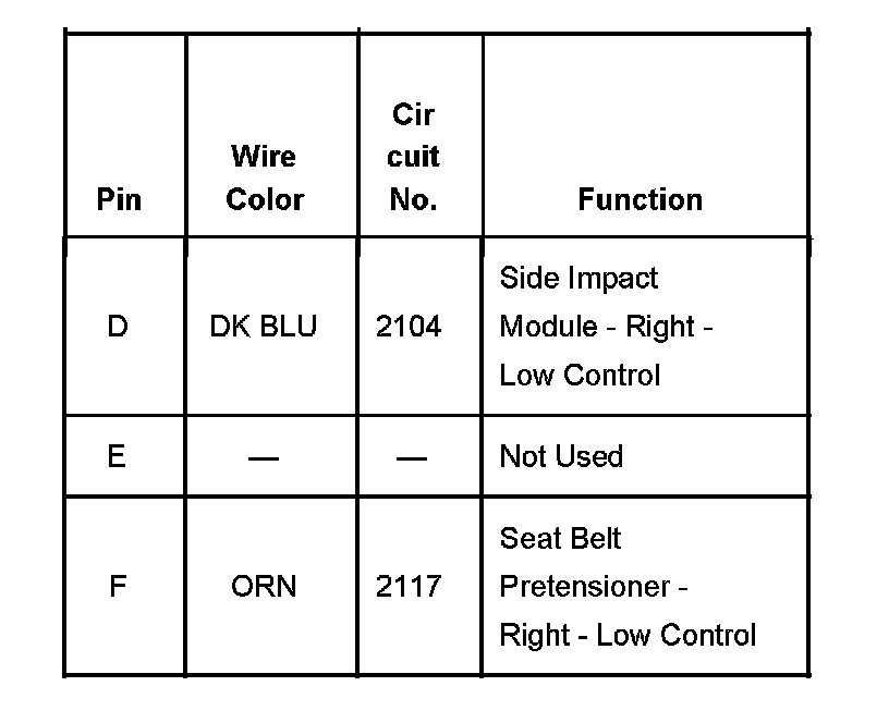Inflatable Restraint Side Impact Module And Seat Belt Pretensioner - RF Part 2: