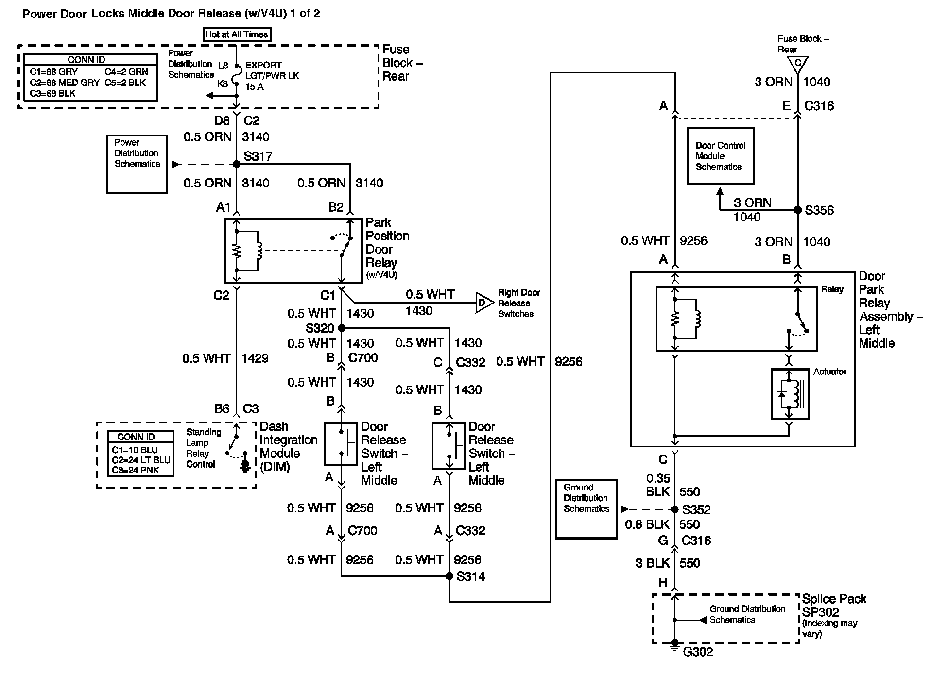 Power Door Locks Middle Door Release (W/V4U) 1 Of 2: