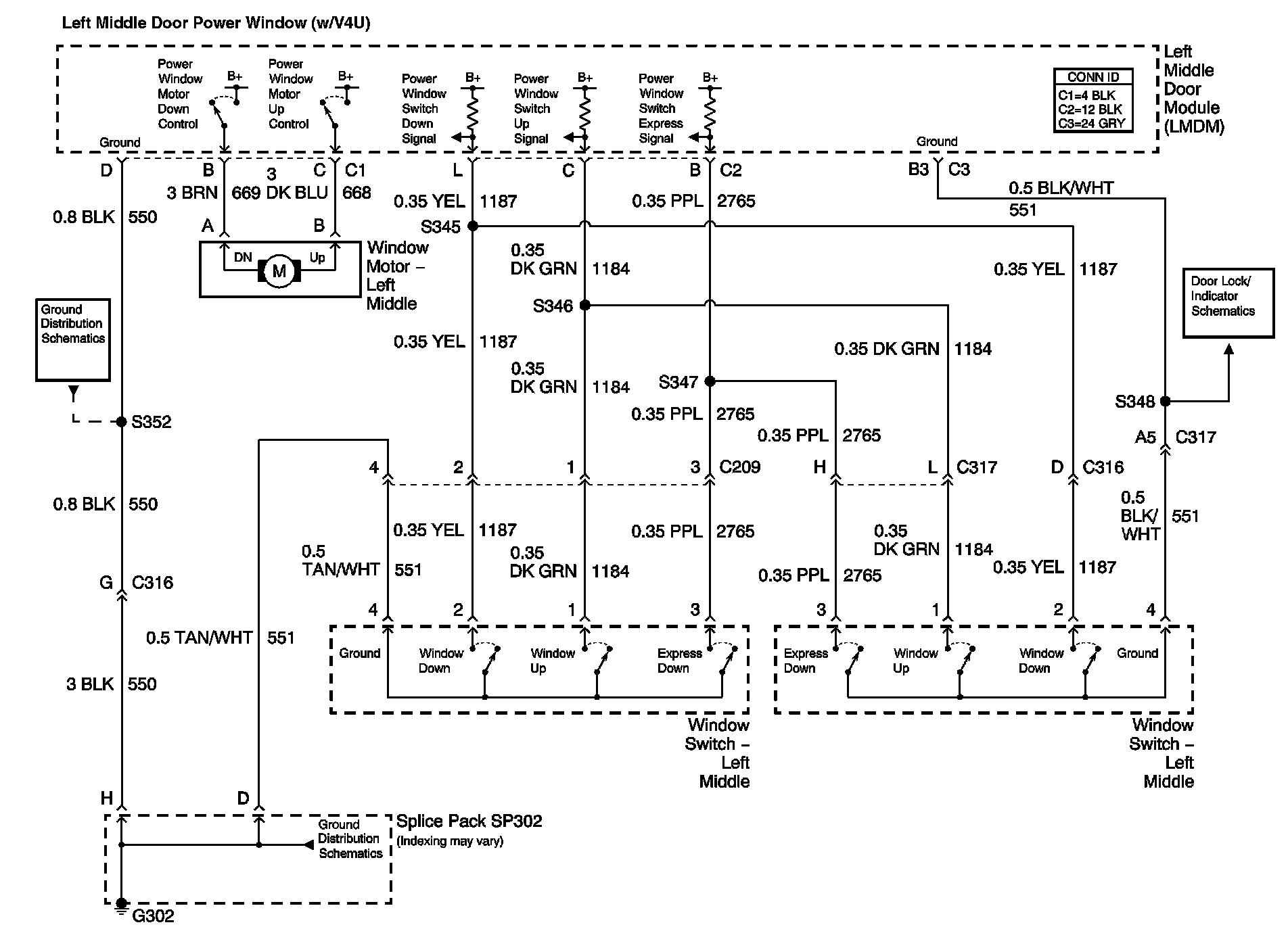 Left Middle Door Power Window (W/V4U):