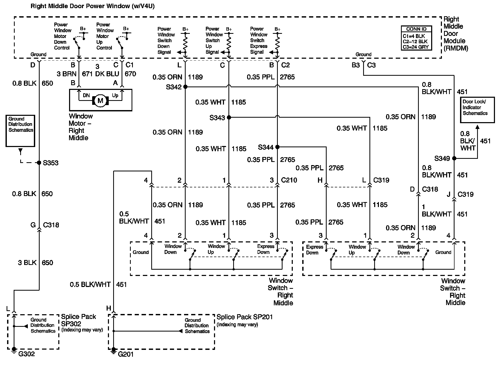 Right Middle Door Power Window (W/V4U):