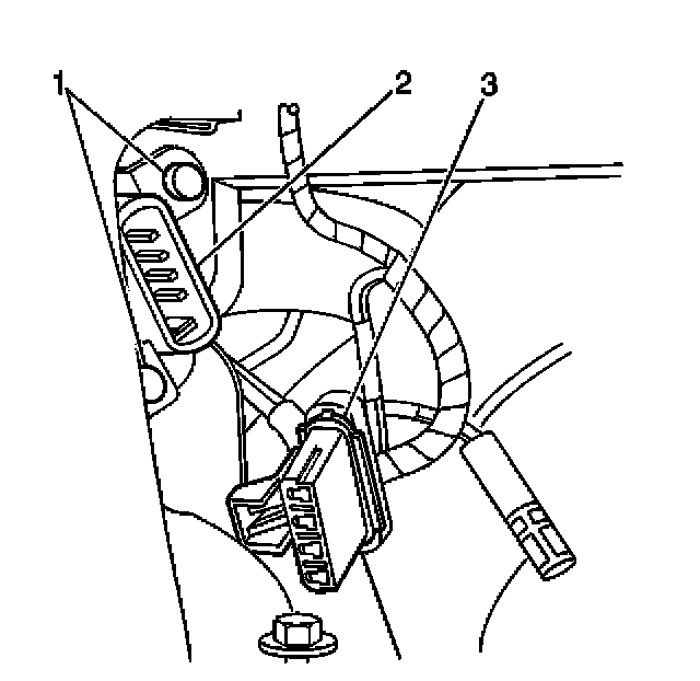 3. Connect the electrical connector (3) to the auxiliary blower motor resistor (2).