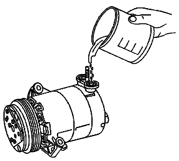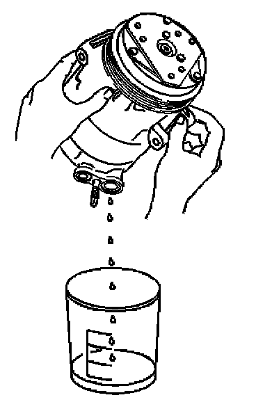 2. Measure and record the amount of oil drained from the removed compressor. This measurement will be used during installation of the replacement compressor.