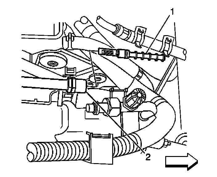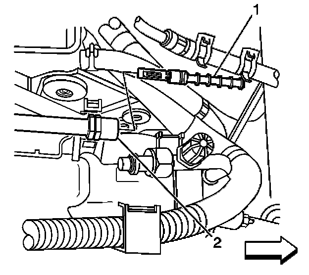 4. Remove the expansion tube (1) from the evaporator hose assembly (2).