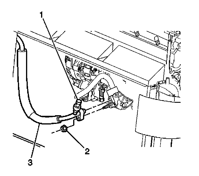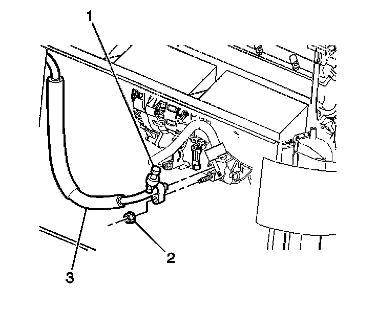 3. Disconnect the electrical connector from the A/C refrigerant pressure sensor (1).
