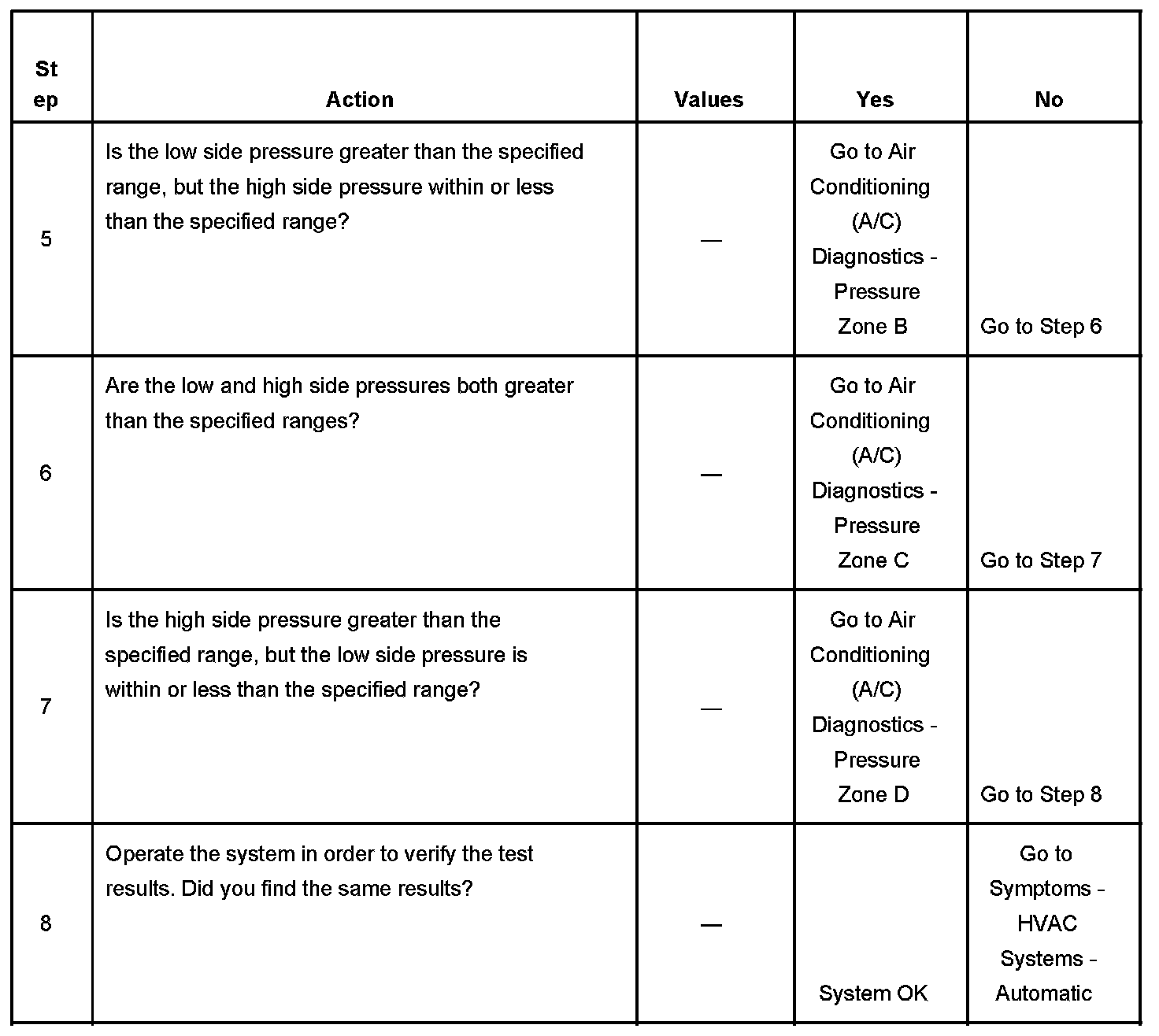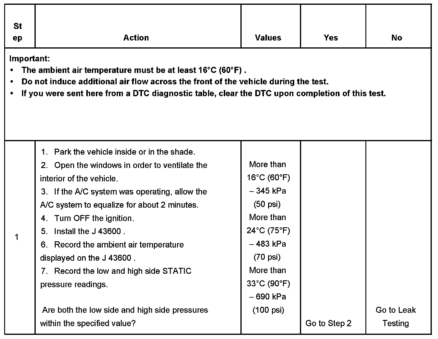 1. This step determines if the A/C system has at least the minimum refrigerant charge required to operate the system without damage.