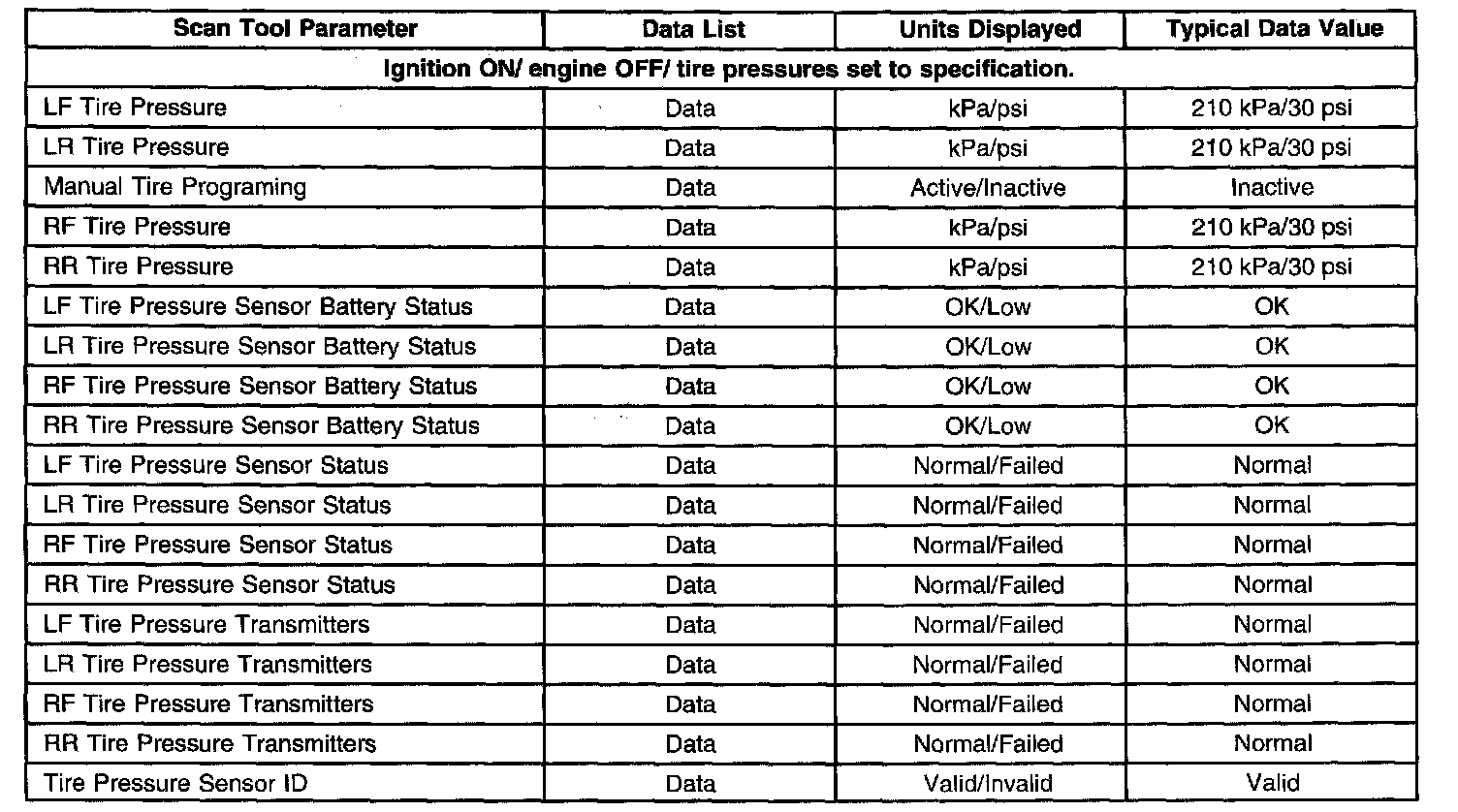 Scan Tool Data List: